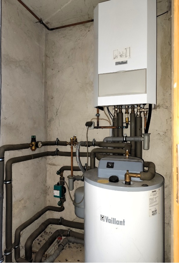 Beheizt wird die Immobilie über einen Gasanschluss mit Zentralheizung, eine zusätzliche eingebaute Schwerkraft-Heizung und ein Kachelofen im Wohnzimmer-Erdgeschoss.