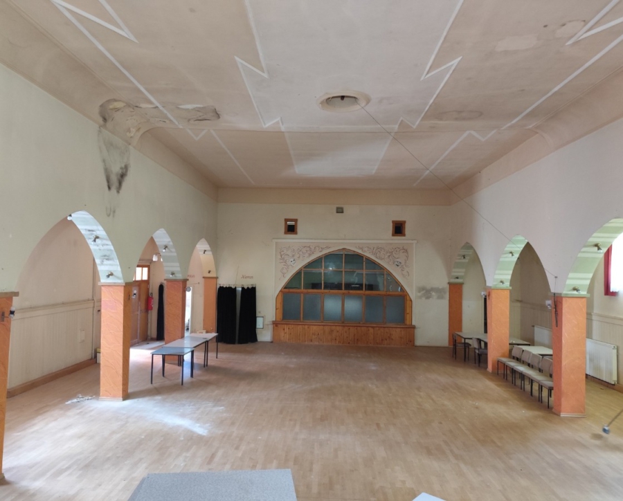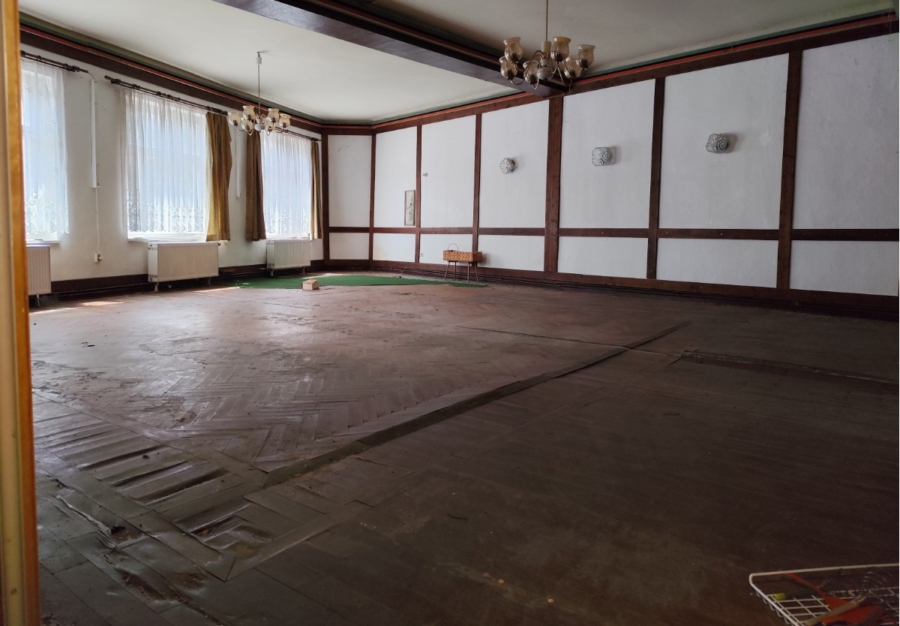 Das separate Nebengebäude umfasst einen großzügigen Veranstaltungssaal mit Bühne, der sich hervorragend für kulturelle, kreative oder touristische Nutzungen eignet.